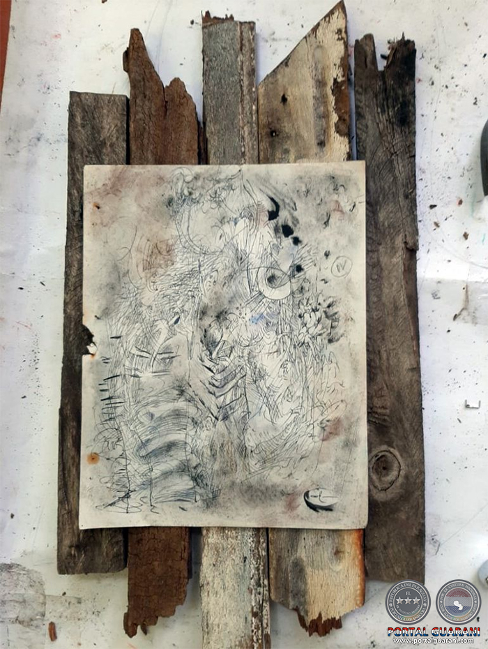 La sugerencia del título, que alude a esos viejos papeles olvidados que todos hemos encontrado alguna vez, traspapelados en cajones o estanterías, se ve remarcada (pero de ninguna manera enmarcada) por las maderas de desecho sobre las que se exponen los dibujos; deterioradas tablas que, en puridad, no son en absoluto un sostén para la exhibición de los dibujos, sino parte inseparable y necesaria de la obra.