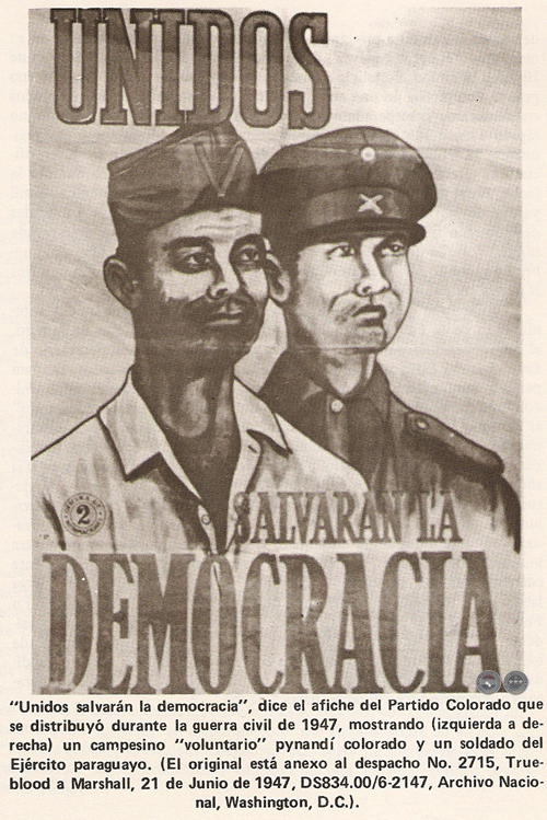 El estado caótico de la política nacional... ha permeado el ejército, dividiendo el cuerpo de oficiales en bandos opuestos que luchan unos contra los otros. Los resultados son evidentes: ruina y descrédito para la nación; prisión y pérdida de la carrera para el derrotado. ¿Y todo por qué? El estado del país no mejora. Después de cada cambio de gobierno persiste el status quo. ¿Qué valor tiene para nosotros dividirnos en facciones para ayudar a hombres o grupos políticos llegar al poder en directo perjuicio de la unidad del cuerpo de oficiales y la destrucción y desorganización de nuestro ejército? Debemos poner un fin a este estado de cosas... Les digo a ustedes, mis compatriotas, que debemos unirnos una vez por todas y marchar como un sólo hombre hacia la conquista de los días de grandeza, de prosperidad y de felicidad para nuestra heroica nación paraguaya.2