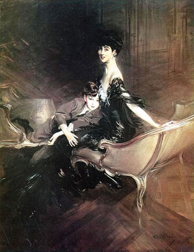 En realidad, apenas encubierta por los groseros harapos del previsible discurso «a la mujer» o «a la madre», etcétera, esas fotos se dirigían a la mirada masculina. Cual las de cualquier revista «para hombres». Con la diferencia de que las revistas con fotos de modelos en poses eróticamente provocativas no se proponen como signo de cierto «consumo selecto» que denote «cultura», «nobleza de intereses» ni nada parecido. No pretendo hacer (no hoy) una defensa de la pornografía, pero es más honesta y digna que estas imágenes, con ínfulas de corrección artística y política, de madres glamorosas que, hipócritas y excluyentes, adulan los mismos deseos que las fotos de Play Boy y el mismo narcisismo de clase que los lienzos de Boldini, al tiempo que fingen una experiencia superior a la que unas y otros ofrecen. A Boldini, es bien sabido, Eco lo ajustició con estas amables palabras: