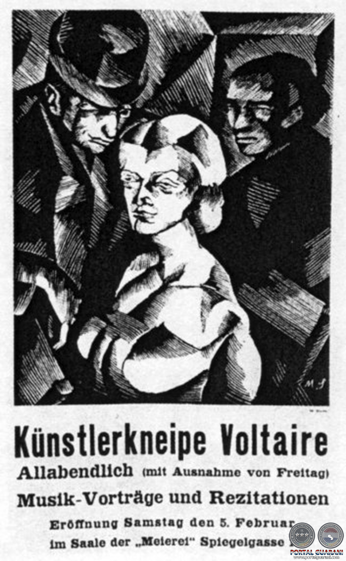 Afiche del Cabaret Voltaire pegado en un de los muros de las calles de Zurich en 1916/ ABC Color.