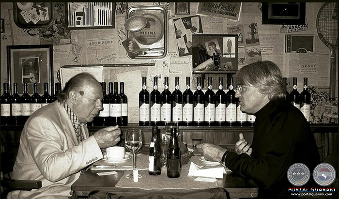 Imre Kertész con su paisano, el cineasta hungaro Lajos Koltal, en el Firkász, un tradicional restaurante de Budapest. Koltal dirigió