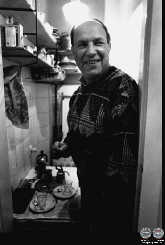 Kertész, en su casa preparando algo en la cocina, en Budapest.