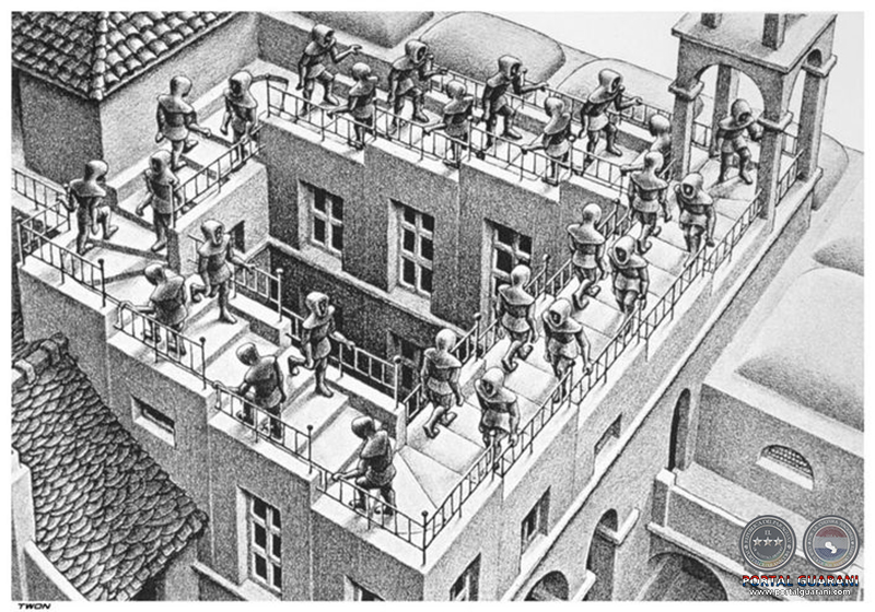 Maurits Cornelis Escher (Países Bajos, junio de 1898-marzo de 1972): "Ascendiendo y descendiendo", 1960