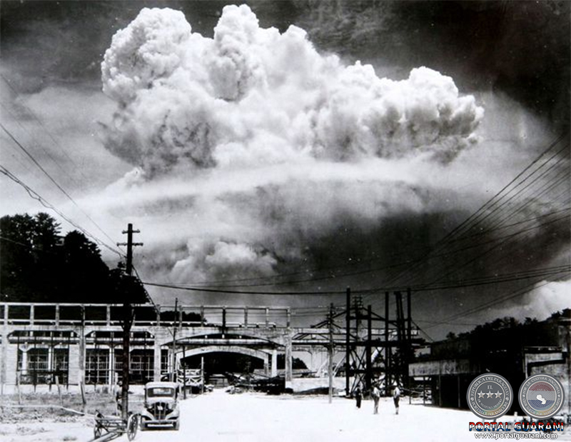 Gran nube sobre Nagasaki 15 minutos después de la detonación de la bomba atómica.