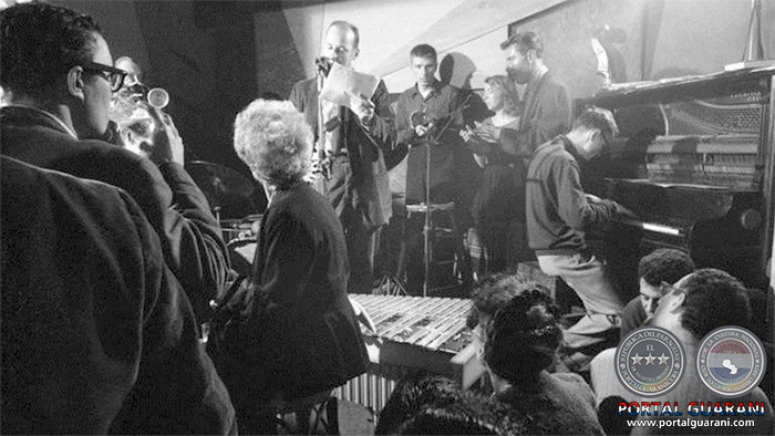 Lawrence Ferlinghetti recitando en el club Jazz Cellar de San Francisco, 1957