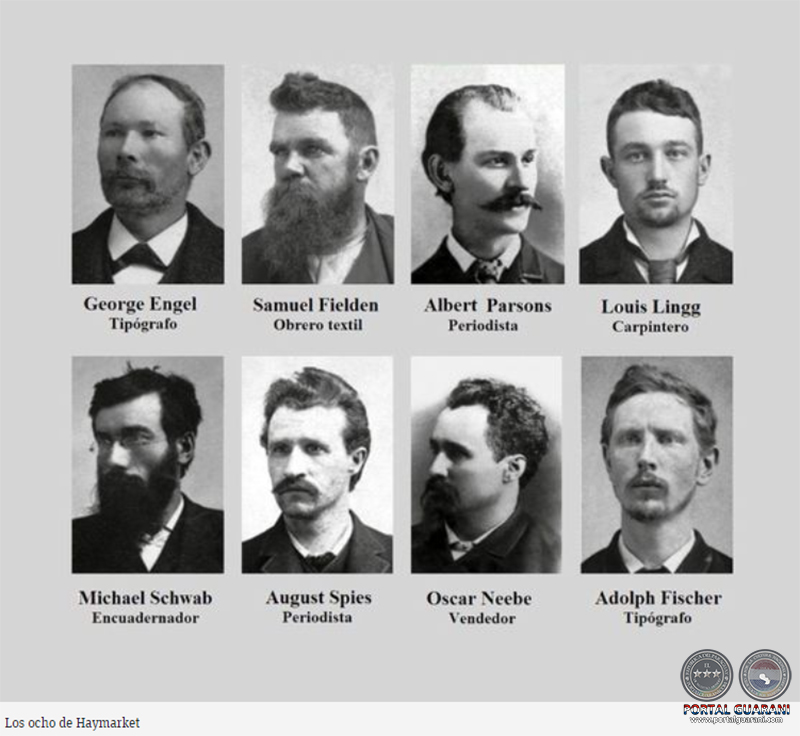 Hoy, primero de mayo del 2022, recordamos al encuadernador Michael Schwab y al obrero textil Samuel Fielden, condenados a cadena perpetua; al vendedor Oscar Neebe, condenado a quince años de trabajos forzados; a los periodistas August Spies, de 31 años de edad, y Albert Parsons, de 39, y los tipógrafos George Engel, de 50 años, y Adolph Fischer, de 28, muertos en la horca; y al carpintero Louis Lingg, de 22 años, que se suicidó en su celda la víspera de su ejecución para no darle al poder la satisfacción de matarlo.