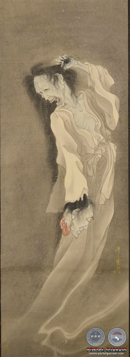 En 1854, cuando Kyosai tenía 23 años, el shogunato Tokugawa firmó un acuerdo económico con Estados Unidos y abrió las fronteras al dinero, la tecnología y la cultura occidentales. Disuelto el orden feudal, borrados en pocos años para siempre los samuráis del mapa, los demonios del viejo mundo extinto seguirán persiguiendo a Akutagawa y poseyendo a Mishima entrado el siglo XX, y proyectándose hasta hoy entre las sombras en las pantallas de cine con Kurosawa. Al acecho en la oscuridad del bosque, en las afueras de aldeas y ciudades, desterrados de la realidad al limbo entre el pasado extinto y la vida presente, entre el sueño y la vigilia, entre las tinieblas y la luz, entre la memoria y el olvido, resistiéndose a desaparecer, tomaron por asalto el ebrio corazón, la diestra mano y la obra alucinada de Kyosai. Que, seducido por el reino prodigioso de la muerte, con los bocetos que hizo del cadáver de su segunda esposa la pintó como espectro atormentado, con la cabeza del artista, su viudo, en una mano.