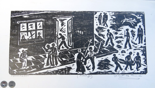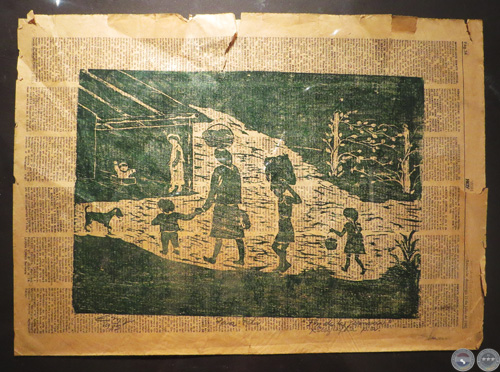 Miguela Vera, Fin de la jornada, Xilograbado en papel diario