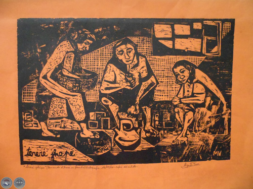 Miguela Vera, Tereré jhápe (Tomando el tereré en familia) xilograbado