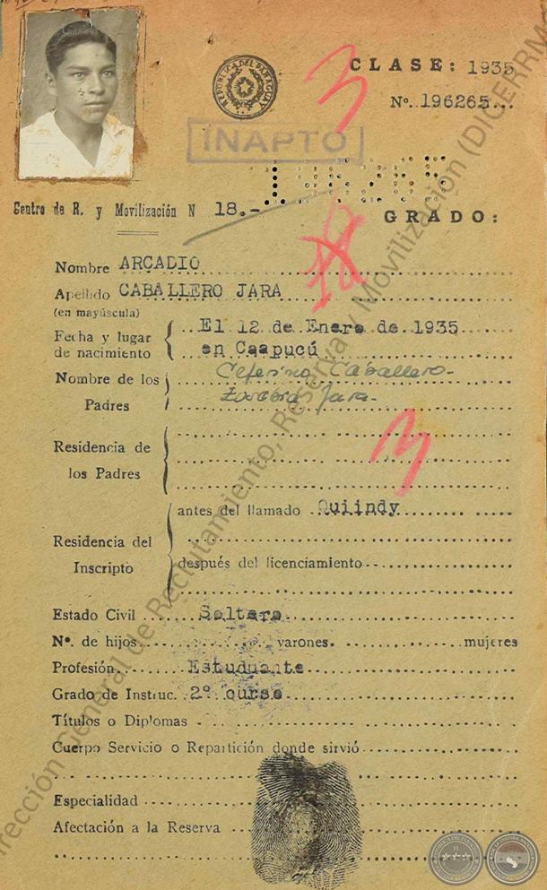Nació en Chararã, compañía de Caapucu, el 12 de enero de 1935. Es hijo de don Ceferino Caballero y Doña María Eusebia Jara. Un hecho significativo narrado por el mismo es que no conoció a su padre, pues antes de que el naciera fue movilizado para la Guerra del Chaco, donde había fallecido. Se crio en Quiindy, ciudad natal de su madre.