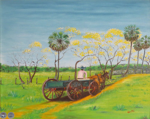 Una pandorga se eleva en un cielo Paraguayo cargado de nubes que llevan techaga’u y vuelan sobre nuestros corazones de niños esparcidos por el viento sobre aquella casita familiar en medio de ese paisaje inolvidable de monte y tajy florecido mostrando todo su esplendor…La bella variación de verdes y la tierra roja, imán de aquel tiempo pasado que no nos deja retroceder. El sinuoso largo camino y aquellas palmeras altas como nuestros sueños…..