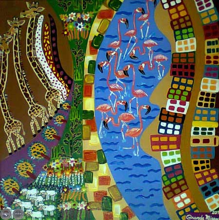 Jirafas, acrílico sobre lienzo