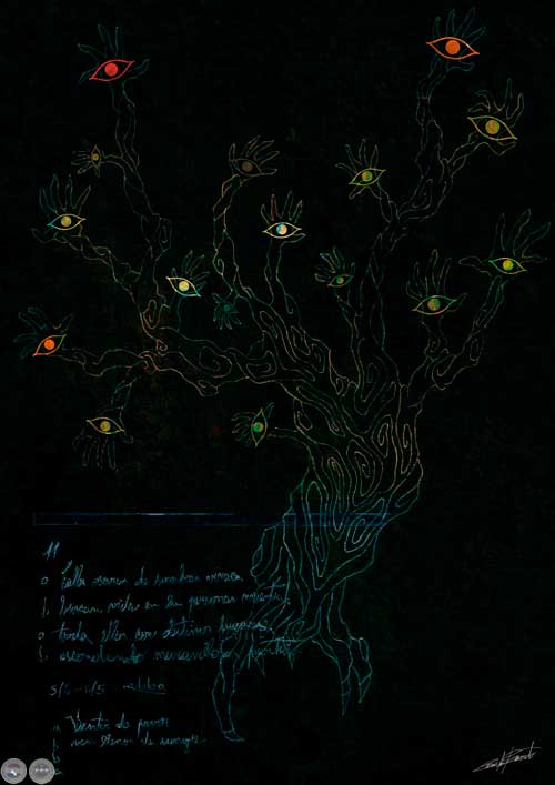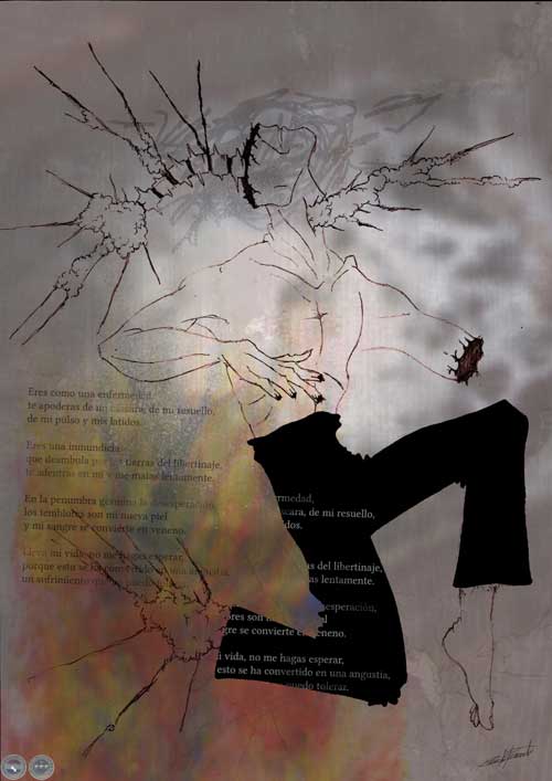 "Imágenes de una mente perturbada" es una colección de ilustraciones, aún no terminada, realizada por César Barreto que, hasta la fecha, no ha sido expuesta. Recorre los pensamientos de un personaje durante un día de su vida. Es un collage entre ilustraciones hechas a mano, fotos de texturas e incluso pequeñas fracciones de poemas escritos por el mismo artista.