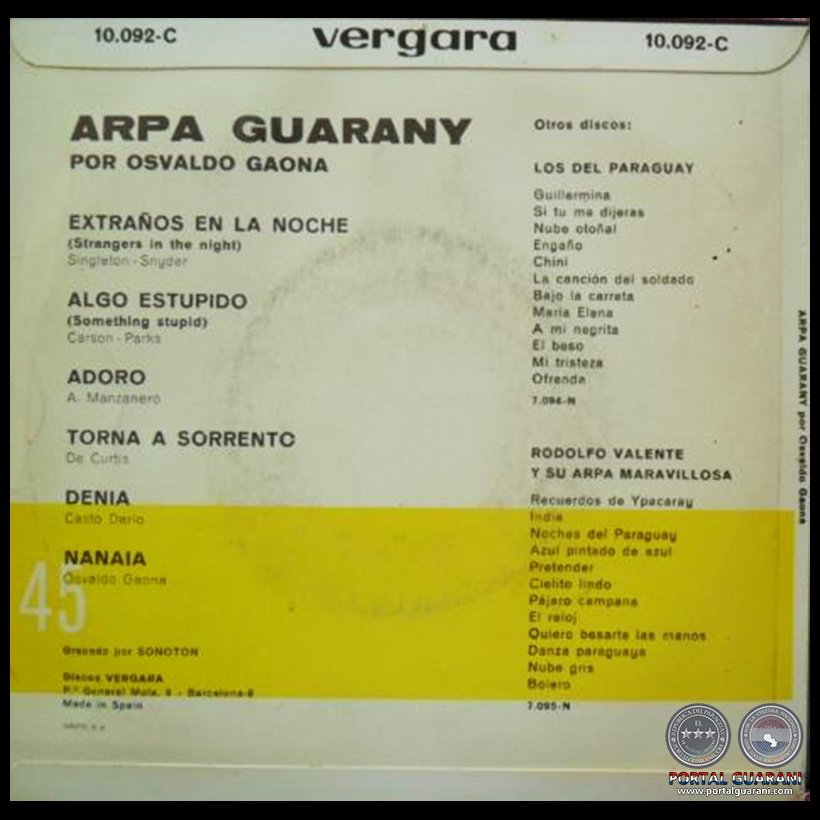 ARPA GUARANY - OSCAR GAONA - Año 1969