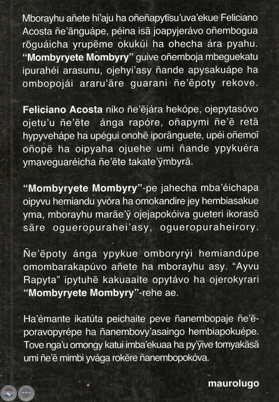Mborayhu añete hi'aju ha oñeñapytĩsu'uva'ekue FELICIANO ACOSTA ñe’ãnguápe, péina isã joapyjerávo oñembogua rõguáicha yrupẽme okukúi ha ohecha ára pyahu. "MOMBYRYETE MOMBYRY" guive oñemboja mbeguekatu ipurahéi arasunu, ojehyi'asy ñande apysakuápe ha ombopojái araru’ãre guarani ñe’ẽpoty rekove.
