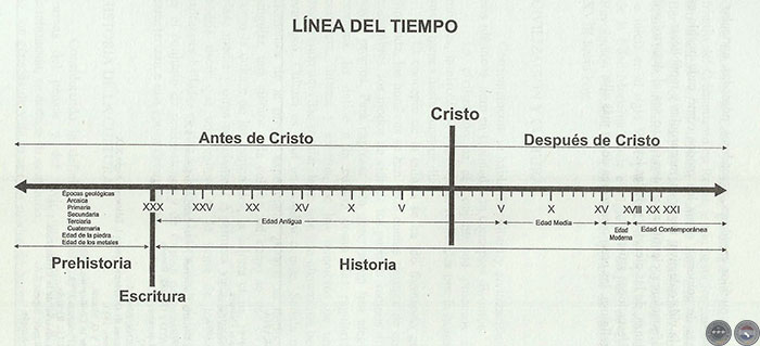 En cuanto a la Historia, se lleva en los pueblos la cronología de diversa manera a partir de algún suceso memorable. Antes de Cristo tenernos la Edad Antigua, generalmente prolongada hasta el triunfo del Cristianismo en Roma, y aún hasta los cambios profundos introducidos en el Imperio Romano por las invasiones de los Bárbaros (Siglo V después de Cristo, aproximadamente). Esta edad abarca las culturas del Oriente, de Grecia y de Roma. La Edad Media se inicia en el siglo V después de Cristo, aproximadamente, seguida de la Edad Moderna desde el siglo XV después de Cristo hasta la Revolución Francesa. La Edad Contemporánea se inicia en el siglo XVIII hasta hoy.
