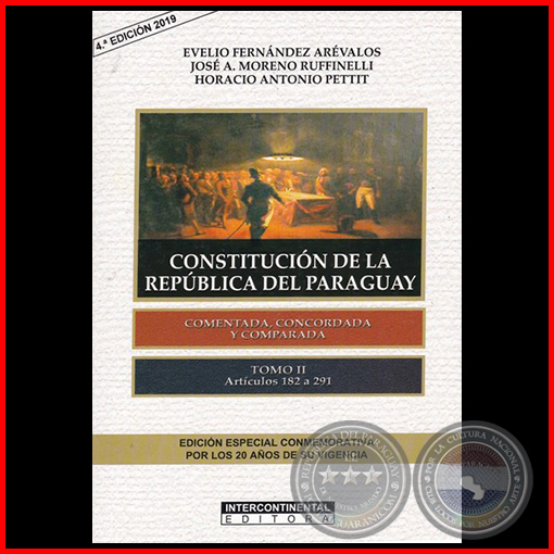 Edición especial conmemorativa por los 20 años de vigencia de la Constitución de la República del Paraguay. Resultado del esfuerzo de un connotado equipo de especialistas, la presente obra en dos tomos recoge comentarios del articulado constitucional, la legislación (reglamentaria y organizativa) aplicable, así como sumarios de jurisprudencia con el fin de contribuir a la continuidad evolutiva del derecho paraguayo.