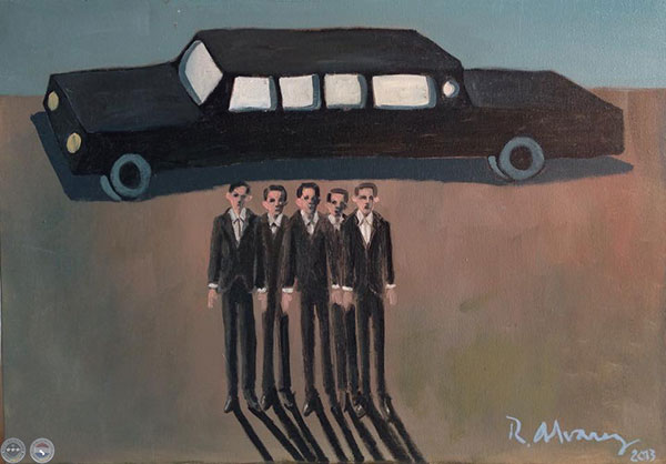 CINCO HOMBRES EN LIMUSINA, 2013 - Óleo de RICARDO ÁLVAREZ