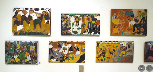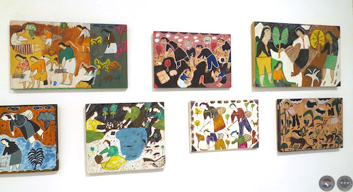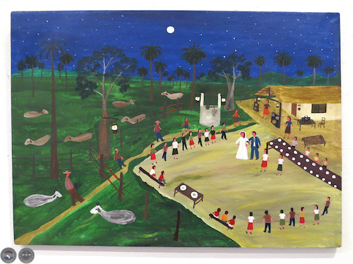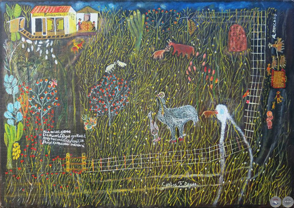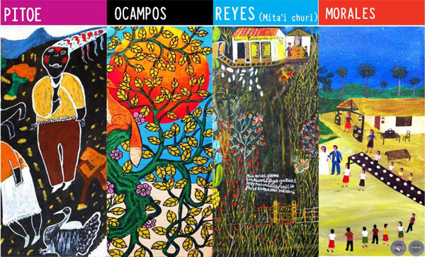 Acerca de esta muestra, el crítico Ticio Escobar, escribe lo siguiente en una parte del escrito que acompaña la exposición:“Esta muestra reúne artistas pertenecientes a dos escenarios. En el primero de ellos ocurre la modernidad propia de ciertos artistas urbanos o suburbanos cuyas sensibilidades se encuentran fraguadas en matrices populares, aunque sus obras lleguen a circular en las instituciones cultas del arte. Tales, los casos de Carlos Reyes (Mita’i Churi), Genaro Morales y Benjazmín Ocampos, cuyas obras se entroncan con el afán moderno siguiendo atajos propios y mezcla con naturalidad diferentes contenidos y repertorios lingüísticos de las vanguardias y la cultura de masas; sin mayores trámites, salta directamente desde sus referentes iconográficos barriales a conquistas formales y expresivas a las que los modernos ilustrados llegan a través de trabajosos y largos procesos.