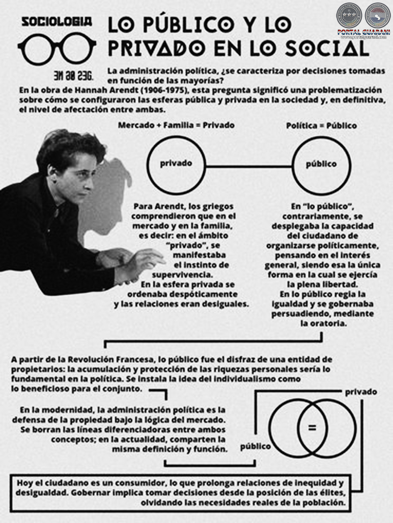 Históricamente, existieron dos esferas que configuraron la realidad de una sociedad: la pública y la privada. Hanna Arendt nos invita a analizarlas, fundamentalmente, para comprender el devenir político de nuestras comunidades.