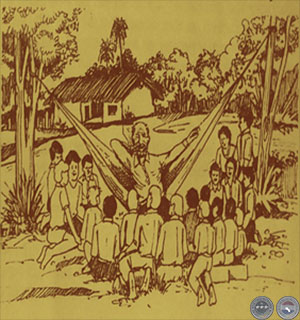 El abuelo Don Liborio en su chacra, rodeado de sus nietos en la hamaca, abajo de su choza con techo de paja y karanday fumó el cigarro poguazú, escupió al suelo, se frunció el seño y miró fijo a cada uno de sus 20 nietos/as como pasando revista si ninguno faltara a la cita familiar.