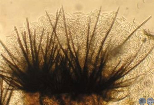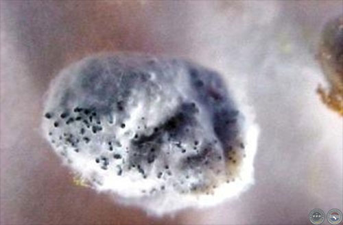ALTERNARIA. Retardos en la cosecha resultan en el incremento del número de semillas infectadas con especies de Alternaria. El número de semillas infectadas con Alternaria se relaciona con daños ocasionados por insectos y con la susceptibilidad diferencial de cultivares a este daño, normalmente pueden ser observados en laboratorio como cadenas de conidios de color negro.