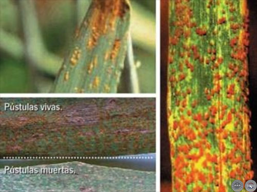 Roya de la Hoja (Puccinia recondita). Es considerada la enfermedad más común en el trigo. Los daños dependen del estadio de desarrollo de la enfermedad, de la susceptibilidad del material, de la virulencia de la raza fisiológica y de las condiciones ambientales.