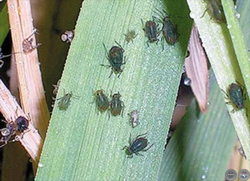 Las especies de pulgones comunmente encontradas como plagas en el cultivo son el pulgón verde de los cereales (Schizaphis graminun); el pulgón amarillo de los cereales (Metopolophium dirhodum); el pulgón de la espiga (Sitobium avenae); el pulgón de la avena (Rhopalosiphum padi); el pulgón del maíz (Rhopalosiphum maidis); el pulgón de la raíz de los cereales (Rhopalosiphum rufiabdominalis), pulgón de la avena (Rhopalosiphum padi).