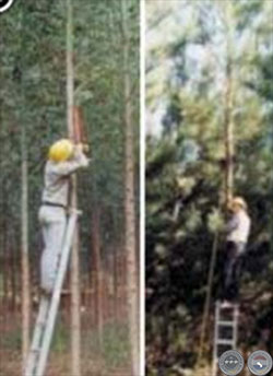 Escalera forestal y tijera o serrucho si fuese el caso.
