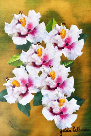 Después del primer collage de Picasso, el segundo más famoso es de Richard Hamilton, quien combinó dibujos con papel. La artista local Gilda Hellmers eligió este procedimiento para organizar su próxima exposición. Y fiel a su estilo, se inclinó nuevamente por las flores. “Para mí, las flores representan vida y realizar collage significó un trabajo de composición y síntesis”, explica Gilda.