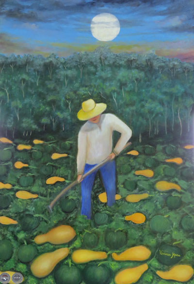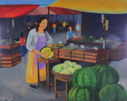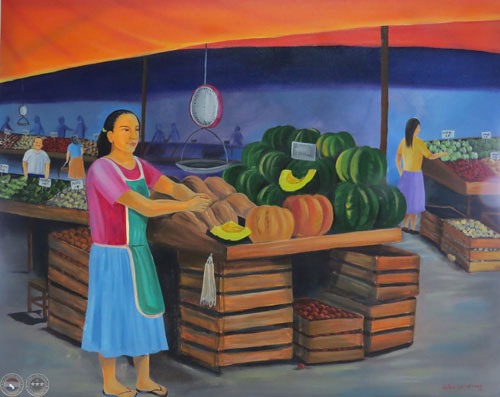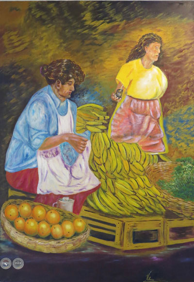 Los artistas tienen una respuesta y se hacen parte de un todo. Se entrelazan y en medio de las cajas, entre las frutas y las verduras, en ese instante del intercambio congelan una imagen y la llevan al lienzo para que cobre vida y la materia se convierta simplemente en lo que es, un recinto dónde asome la verdadera riqueza: - Aquí estamos para crear lo creado; - aquí nos manifestamos para embellecer la belleza; - aquí soñamos, vivenciamos, compartimos…, nos dicen sus obras que están hermanadas en una admiración sin par por la naturaleza con emociones disparadoras de nostalgias que se vierten como agua de manantial para clarificar….