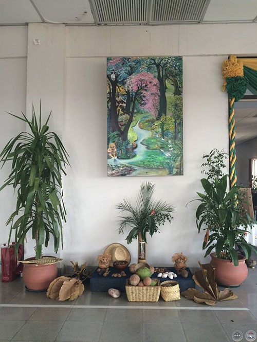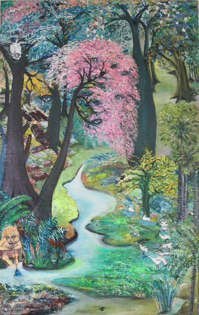 El arte se magnifica al entablar el contacto con la madre natura y esbozar sintomáticamente valores propios de escenificaciones planteadas en un espacio que desea recrear la fortaleza del empeño laborioso diario y que se traduce en su sapukái extenso de colorismo, sensaciones, puntos de vista, líneas formas colores y sombras que van cubriendo la geografía propia de la obra en un éxtasis de libertad.
