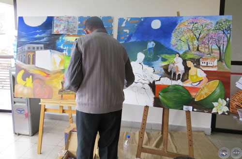 El artista pinta este aguyje.