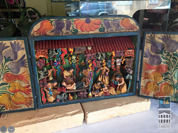 Este viernes 23 de octubre, en el sector Alhelí Flores (Paí Pérez 689 esq. Luis A. de Herrera), a las 19:30, tendrá lugar la habilitación de la muestra de Mabilón Jiménez. Sobre el artista peruano, comentan los curadores en el Catálogo de la BIA 2015: “es un maestro artista/artesano cuya familia se dedica a la creación del retablo ayacuchano, una caja pequeña hecha de madera que contiene figuras pequeñas y escenas que abordan la vida cotidiana peruana. Pintadas con una cantidad muy variada de ricos colores, las figuras de Jiménez están hechas con una pasta de trigo o papa mezclada con yeso y esculpidas con posturas y expresiones disímiles. Hijo de Florentino Jiménez -el artista/artesano que quería explorar en el contexto de los retablos escenas cotidianas y no solamente religiosas- Mabilón también mantiene una sensibilidad apegada a la cultura popular contemporánea –y refiere así, en su compleja obra, tanto aspectos de naturaleza trascendente, como a la cerveza Corona y las galletas de Oreo”.