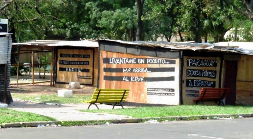 Pero con ese criterio la obra distinguida pudo haberse evaluado también como una «revelación» (ya que revela la naturalización de la pobreza en el país). O como una «interrupción» (ya que interrumpe la lógica habitual de lectura de un espacio público y de los objetos en él emplazados)… O aun como un «striptease» (ya que des-viste/desnuda las asimetrías sociales existentes en el Paraguay).