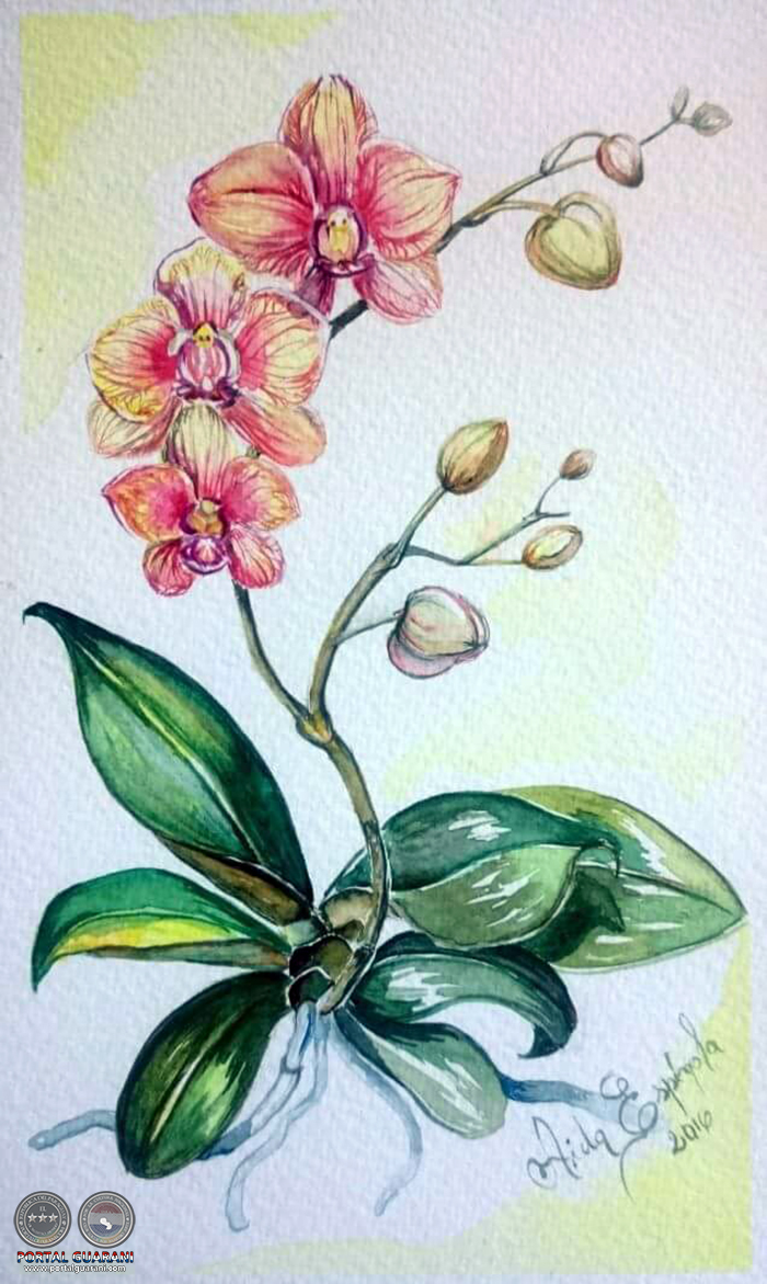 “Encantos Naturales” como título de esta muestra, y con un tema que los artistas tienen acostumbrado trabajar, las flores. En ese sentido, la exploración de las flores es común como se ve a lo largo de la historia; sin embargo nos da un signo de que sigue siendo la fuente inagotable para inspirar a los creadores visuales. En época Victoriana; las flores servían de lenguaje comunicacional y se le llamaba floriografía, que consistía en una manera de comunicarse a través de los arreglos florales que se remitían como mensajes que contenían códigos comunicacionales que expresaban sentimientos a través de los colores. Pero por sobre todo las flores y las plantas en general, fueron siempre objeto de estudio principalmente por la botánica, los mismos eran acompañados por artistas que hacían dibujos o pinturas para registrar en imágenes las especies que se iban descubriendo. La precisión, la exactitud en el dibujo y en el color eran fundamentales para tener un registro fiel de lo concreto que ofrece la naturaleza, sumándose a eso la paciencia y la capacidad de observar. Y en el caso de Aida le agrega la imaginación artística. La búsqueda de la artista en esta serie de encantos naturales precisamente es la pasión por las flores y la botánica, de un estilo realista logrando los rasgos esenciales de cada planta y flores. Las estudia en su forma y le atrae la delicadeza y sensibilidad que tienen. Relata ella misma que es una especie de amor a las flores y desde niña era atraída por ellas plantando en su jardín. Cada flor es un reto y al concluirla siente que su esfuerzo y amor a ellas es gratificante con solo ver la imagen terminada como uniendo dos pasiones, el arte y las ciencias naturales. Las flores y plantas en general son esenciales para la vida, y una vez más Aida nos da a conocer el registro de su observación en veintitrés imágenes de Encantos Naturales.