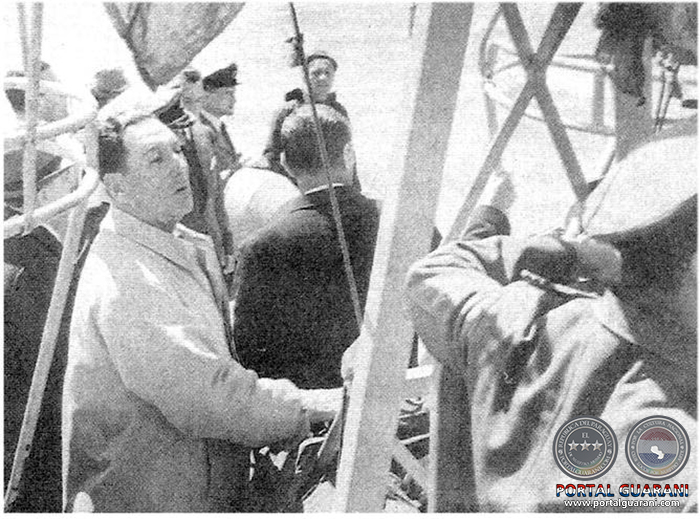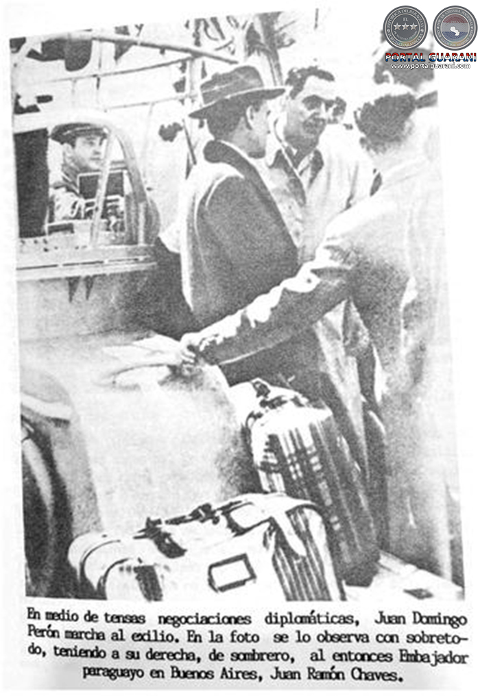 Cuando Perón solicitó asilo a Paraguay, el gobierno de entonces se lo concedió con rapidez. Esta buena relación se sustentaba en un gran favor que los colorados le debían al presidente argentino: el envío, durante la guerra civil de 1947, de dos barcos como apoyo a la defensa de Asunción, el Granville y el Drummond, y el suministro de fusiles, municiones y otros elementos bélicos que habían salvado al gobierno colorado de una inminente derrota.