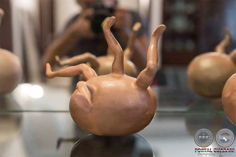Laura Mandelik trae también a escena la figura del huevo en piezas de fotografía y escultura. Este símbolo tiene relación con lo que decíamos al final del párrafo anterior: las posibilidades. Para Lacan el deseo es irrealizable por definición, existe únicamente como un “ir hacia”, como transición y no como consumación. Este es el sentido cabalístico del huevo, la potencia o el vacío que está preñado de todas las cosas, que contiene en su número cero la posibilidad de todas las posibilidades. Llegamos al dasein de Heidegger, el Ser del humano son sus posibilidades, que se manifiestan en las cosas, las cuales son extensiones del ser: el rascacielos, la escalera, el clavo, la carretera. Las esculturas presentan la figura humana lidiando para desprenderse de la forma cerrada del huevo, empujando hacia afuera y asomando su silueta, de la misma manera que cualquier ejercicio del hacer, o de apropiarse de lo hecho, funcionan como extensiones o espejos parciales de la subjetividad.