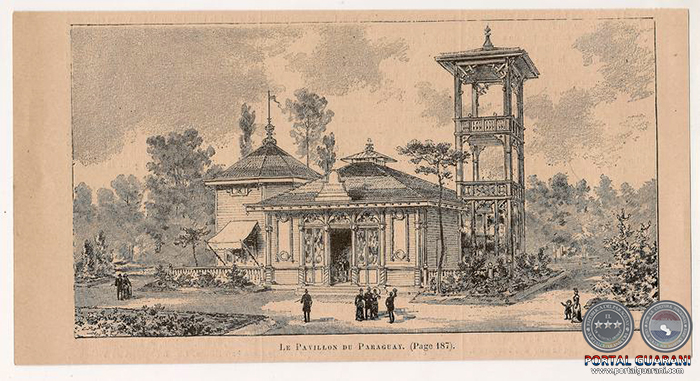 El Pabellón Paraguayo en París fue descrito por el escritor cubano José Martí –que era entonces cónsul de Uruguay en Nueva York, y posteriormente lo fue de Paraguay y de Argentina en la misma ciudad– como el «de la torre de mirador, con las ventanas y puertas como de nación de mucho bosque, que imita en sus casas las grutas y los arcos de los árboles» (20). Ocupaba 200 metros cuadrados en el Campo de Marte, sobre la Avenida de Suffren, a espaldas del Palacio de Artes Liberales y entre los pabellones de Santo Domingo y Guatemala (al Sureste de la Torre Eiffel).
