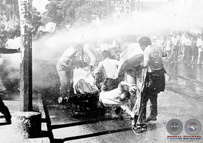 En medio de la inestabilidad política, en 1954 llegó al gobierno el general Alfredo Stroessner, quien con los años fue acaparando el poder hasta abarcar todos los sectores públicos y privados, para mantener al país controlado por varias décadas. Durante su dictadura se sucedieron manifestaciones emblemáticas, especialmente en la década de 1980, cuando la presión internacional hizo que el gobierno redujera la represión. No obstante, una de las protestas más importantes en el periodo más duro se vivió en junio de 1969. El gobernador de Nueva York (EE. UU.), Nelson Rockefeller, visitó Paraguay, ocasionando históricas movilizaciones sociales encabezadas por estudiantes secundarios y universitarios. Los manifestantes tomaron varias calles de la capital quemando banderas norteamericanas y fueron brutalmente reprimidos por las fuerzas públicas. Decenas de estudiantes fueron apresados y torturados, y varios extranjeros, especialmente sacerdotes, fueron expulsados del país. La represión fue tal que el obispo de Caacupé, Ismael Rolón, suspendió la procesión de la Virgen en sus festividades de diciembre, hecho que se sumó a la excomunión del ministro del interior, Sabino Augusto Montanaro. Otra sonada manifestación reprimida fue la acontecida el 16 de marzo de 1986 en Alfonso Loma, distrito de Caraguatay, convocada por el Partido Liberal, en la que participaron los Saguier, los Franco, y otros conocidos dirigentes que tendrían luego importante actuación en el proceso de transición.