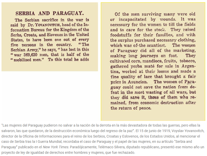 Es probable que uno de los datos más mencionados acerca del Paraguay sea el del exterminio casi total de su población masculina como consecuencia de la guerra de la Triple Alianza. Su correlato es el papel protagónico, contado en clave romántica, de la reconstrucción a cargo de las mujeres, así como de la “irregular” conformación de las familias.