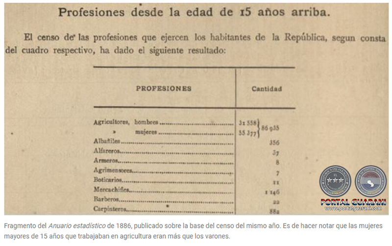 Los brazos de mujeres, adultas y niñas, y niños y adolescentes, contribuyeron a levantar la agricultura. Barbara Potthast, quien estudió las familias paraguayas, y a las mujeres en particular, desde la época colonial, pone en relieve el hábito tradicional de brazos femeninos que cultivaban la tierra, lo que hizo que las miles de mujeres y niños sobrevivientes de la guerra se dedicaran a la agricultura para paliar el hambre. El Anuario estadístico basado en el Censo de 1886 (es decir, 16 años después del final de la guerra), da cuenta de una población total de 239.774 habitantes. El 41 % (98.307) tenía entre 0 y 14 años. De la población desde 15 años (141.467 habitantes), 86.935 personas se dedicaban a la agricultura: 55.377 eran mujeres. En su mayoría, eran mujeres jefas de hogar.