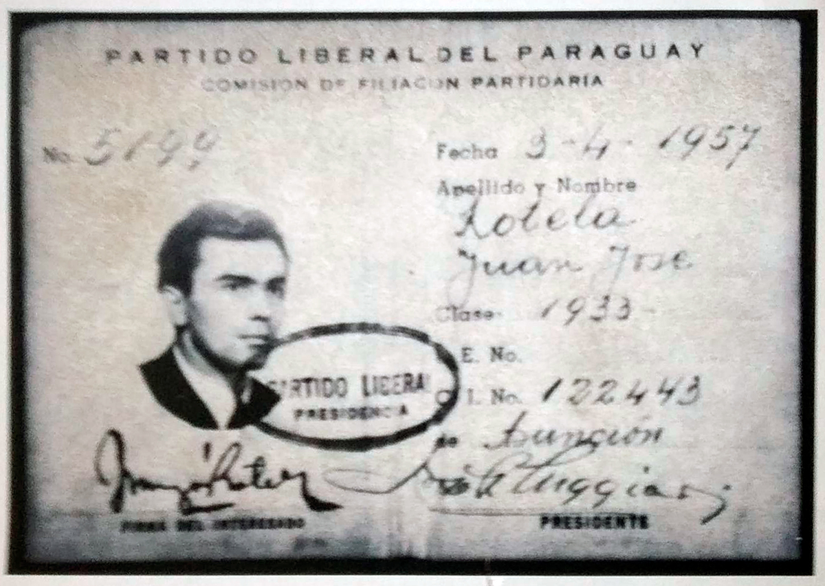 Afiliación del comandante Juan José Rotela al Partido Liberal en el año 1957 en la Argentina, Comité de Buenos Aires, su carnet firmado por José Patricio Guggiari.