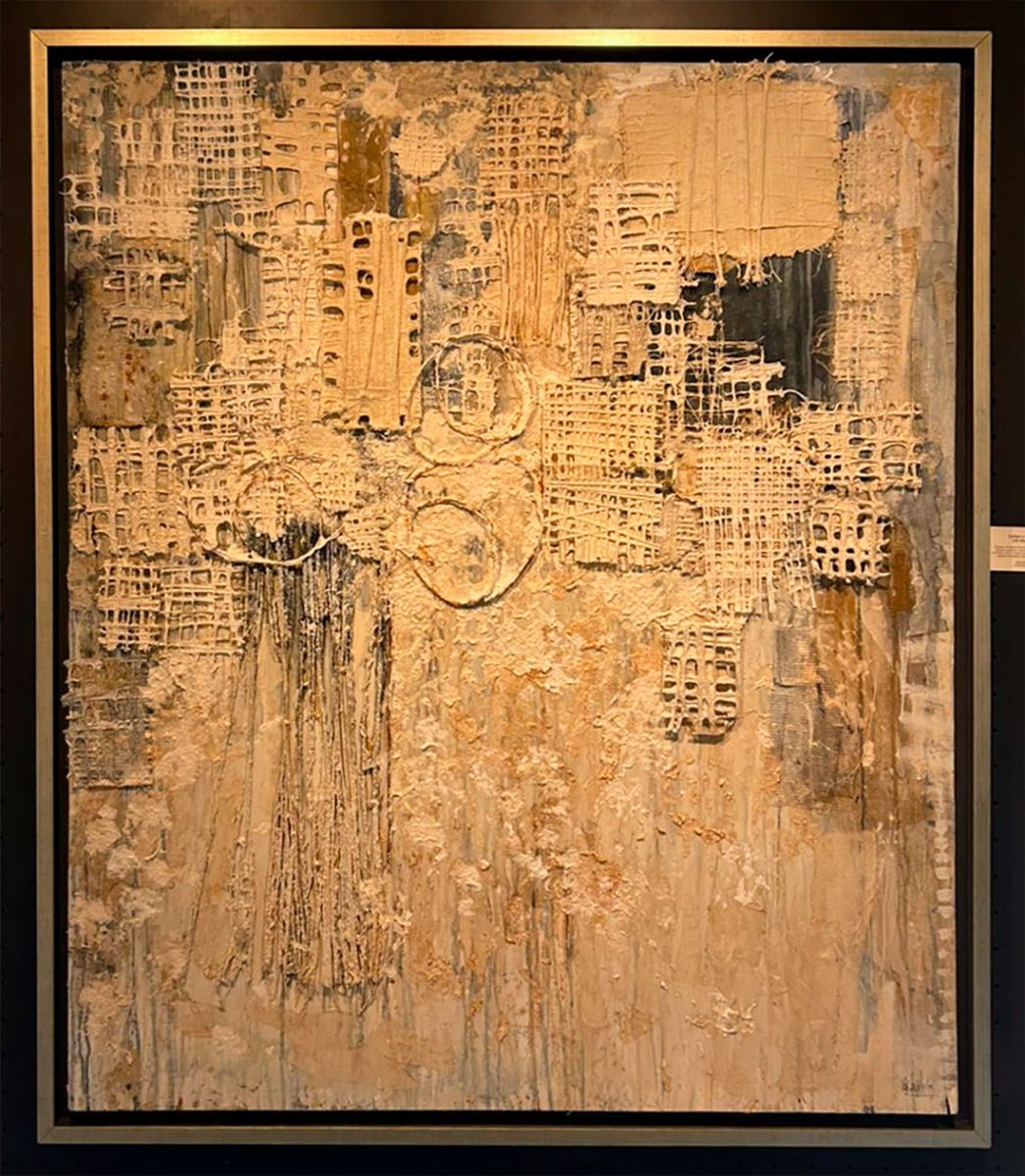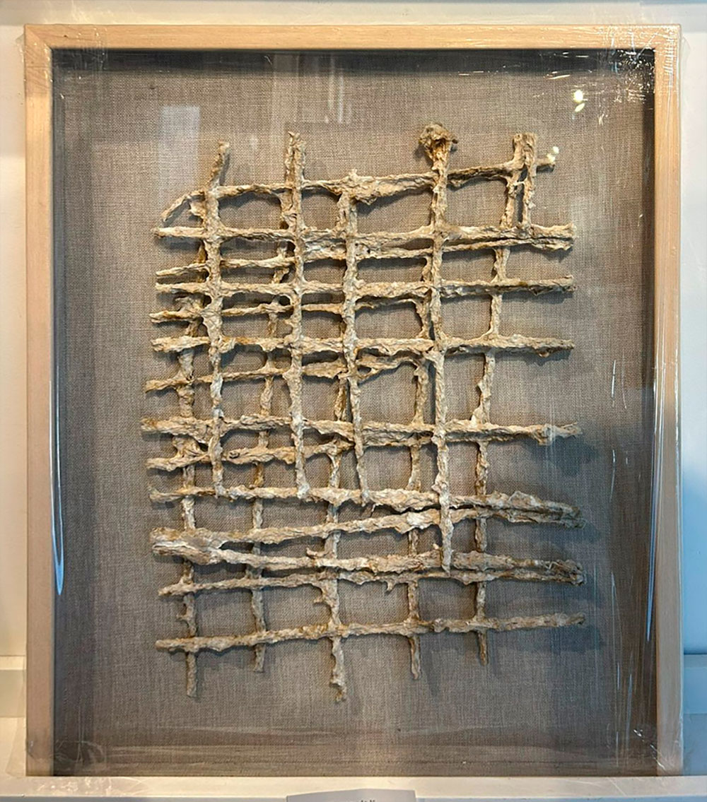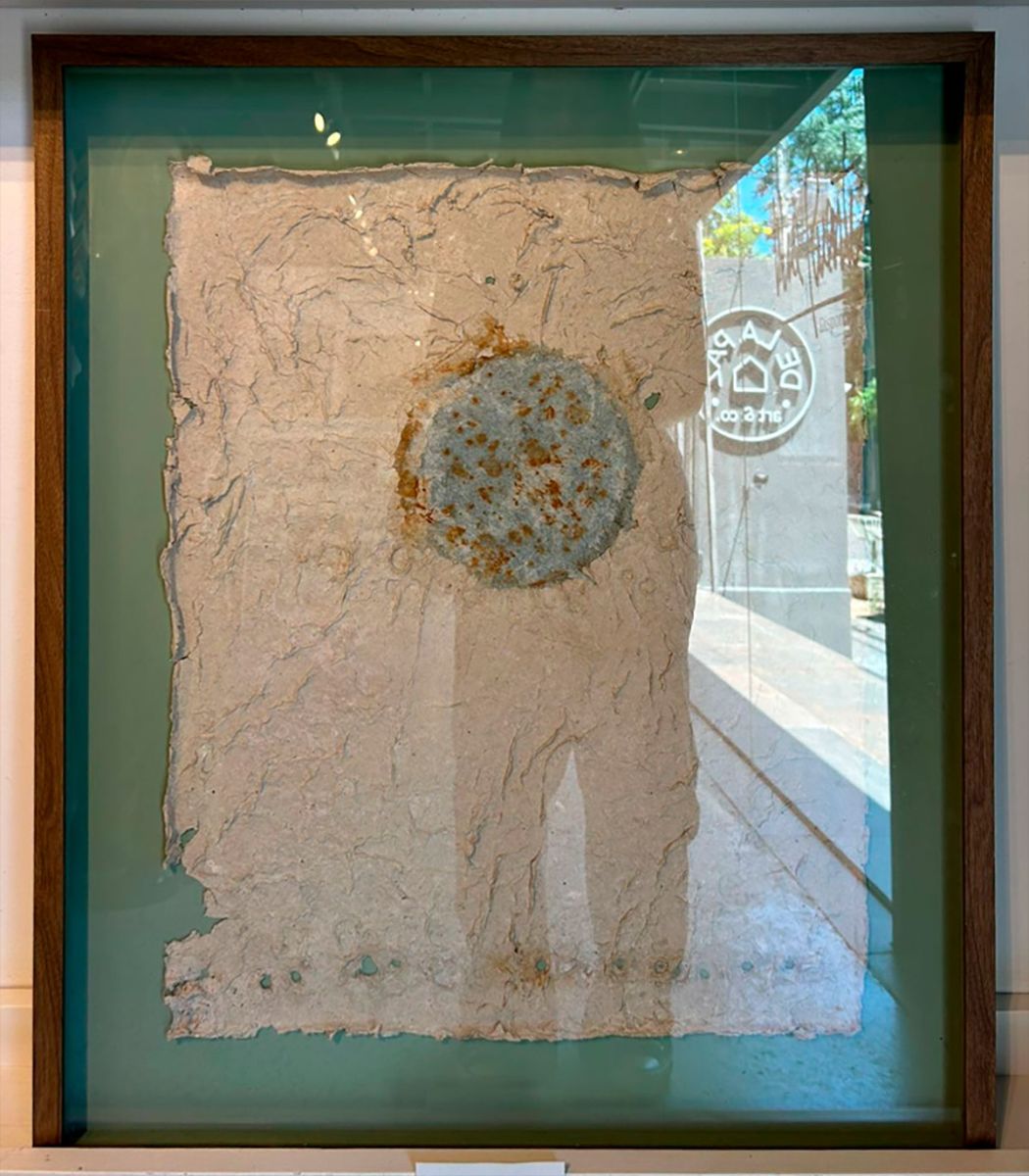 Obra hecha con pulpa de algodón, óxidos y pintura chalk.