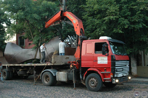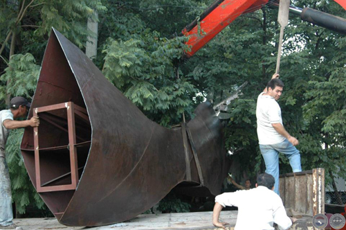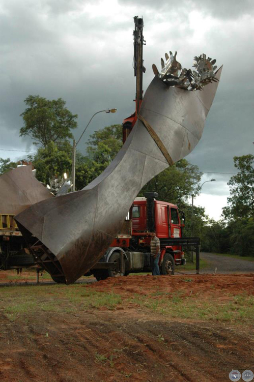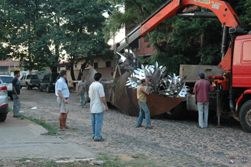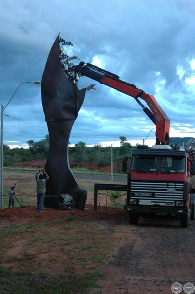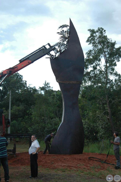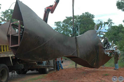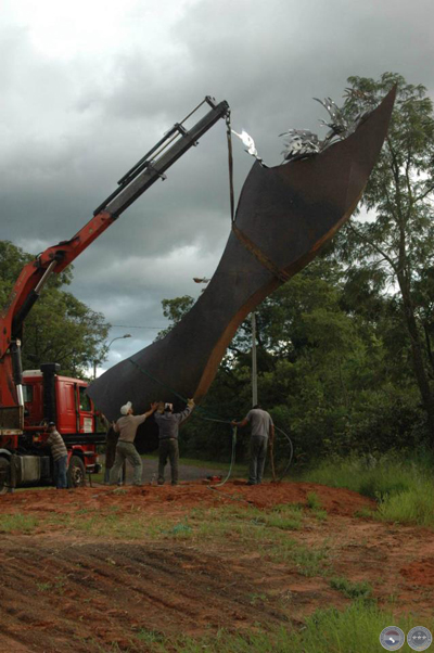 Montaje de escultura "Güembé"