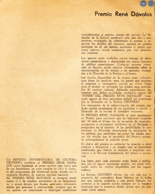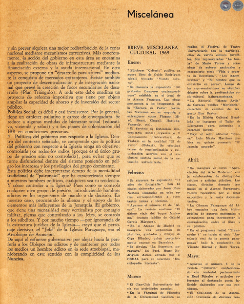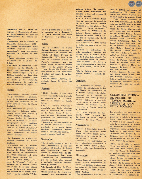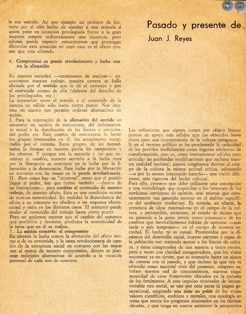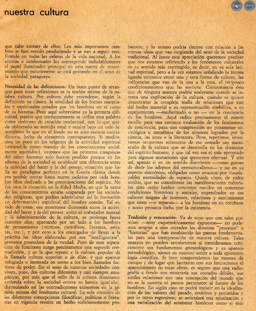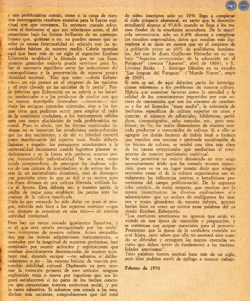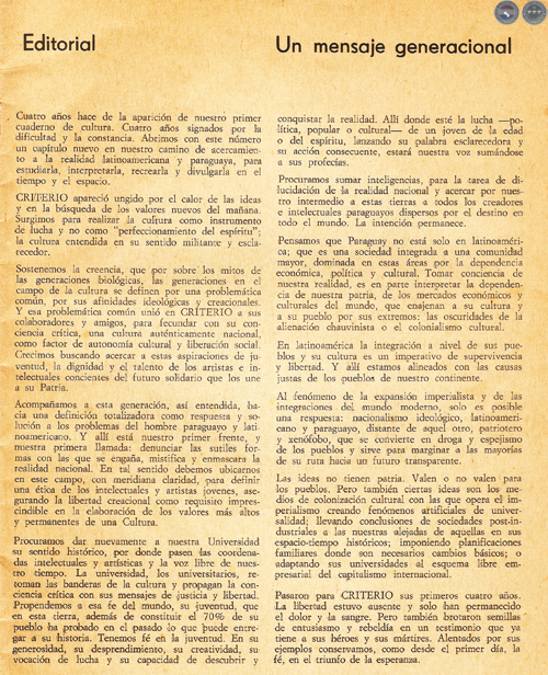 La benevolencia de nuestros lectores, que desde un comienzo fue tanta, una vez más volvemos a pedirla, para proseguir con humildad el ideal de los tiempos: cultura nacional y la liberación del hombre, paraguayo, Si a ellas hemos contribuido en algo, quedaremos contentos.