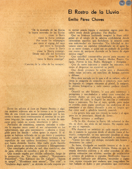 Emilio Pérez Chaves, “El rostro de la lluvia”