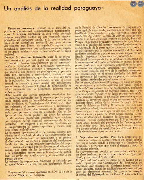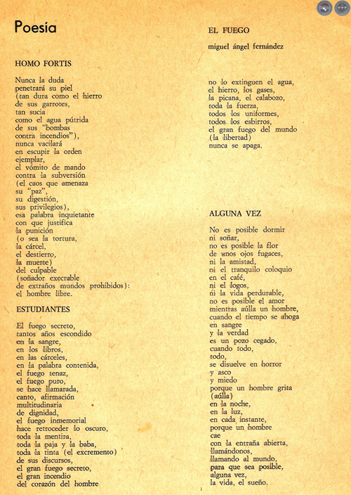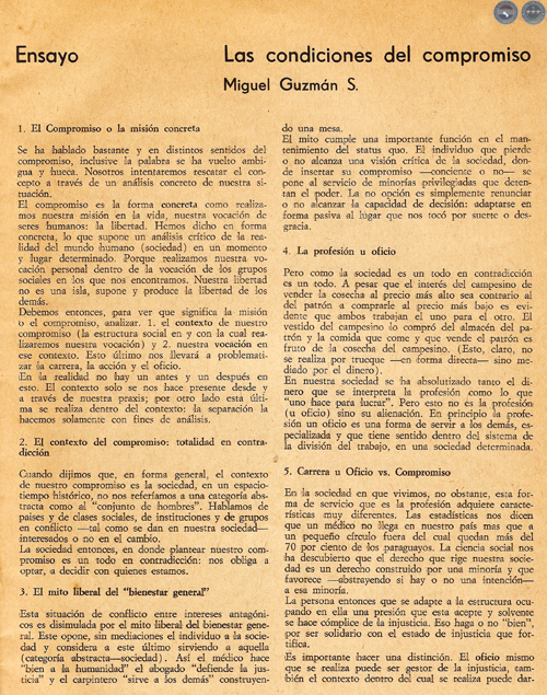 Hoy, más que nunca, cuando distinguidos profesores, sacerdotes y compañeros universitarios, suman a nuestra pobreza sus voces ausentes, e intelectuales y humildes hombres de trabajo callan su voz en la obscuridad de las celdas, nuestra palabra brillará con el coraje que es preciso para defenderlas.