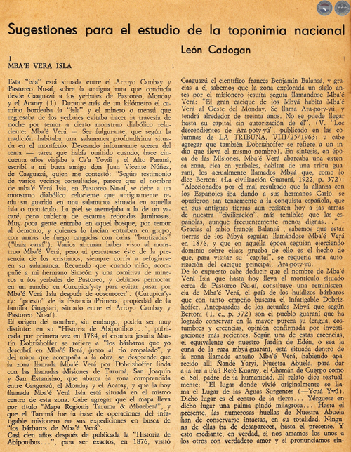 León Cadogan “Sugestiones para el estudio de la toponimia nacional”