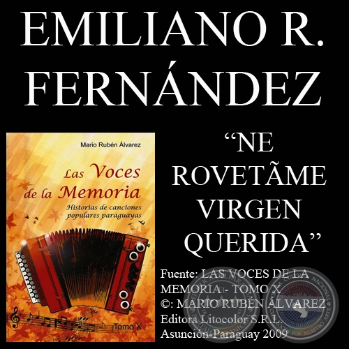 "Los integrantes del Grupo Generación llegaron a mi casa en busca de fotografías para ilustrar su disco. Conversando, les di la letra que en el barrio Ysaty, en la casa del músico y peluquero ANTONIO BARRIOS, me entregó el suegro de éste. Estaba yo allí cuando, de repente apareció el señor, ya de edad, y me entregó la letra de NE ROVETÃME VIRGEN QUERIDA, de EMILIANO R. FERNÁNDEZ. Esto habrá sido allá por el 2003", cuenta por su parte ÁNGEL ANTONIO GINI JARA, uno de los mayores y más documentados investigadores de la vida y la obra del que fue llamado "TIRTEO VERDEOLIVO".